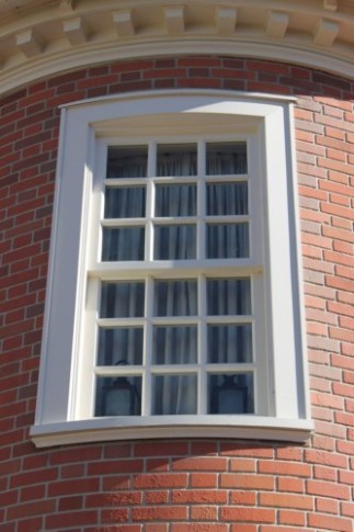 Regardez attentivement les volets des fenêtres, ils s’affaissent tous! En effet, pendant la guerre de l’indépendance, l’Angleterre a cessé d’expédier des objets en métal aux États-Unis parce que les coloniaux les faisaient fondre pour fabriquer des balles. Les volets ne pouvaient être suspendus que par des sangles de cuir qui, au fil du temps, commençaient à s’étirer et à affaisser les volets.